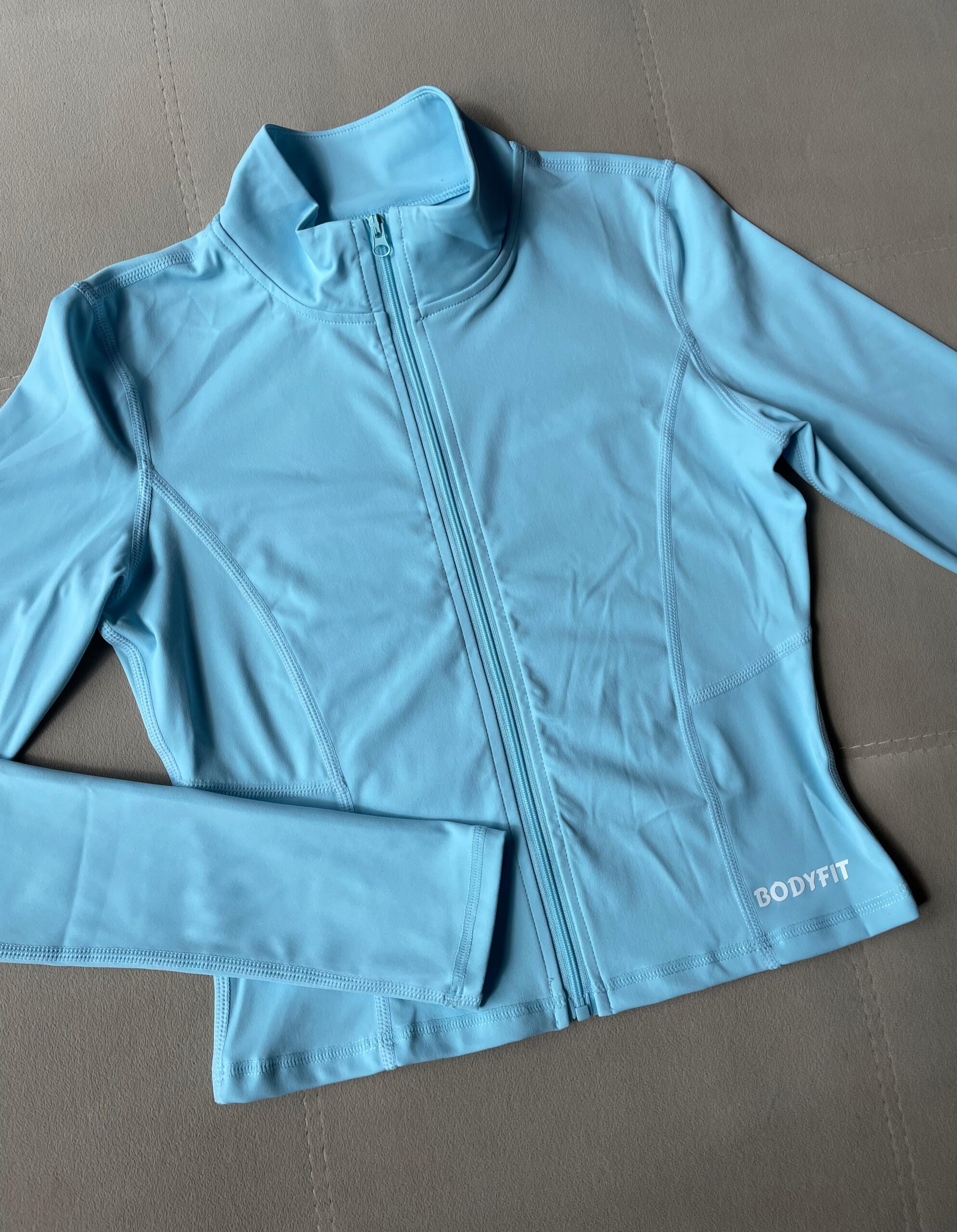 Refrescante, femenina y llena de estilo: esta campera crop seamless en tono celeste ilumina tu look con un aire suave pero poderoso. Ideal para el gym, running o un outfit urbano que no pase desapercibido.
