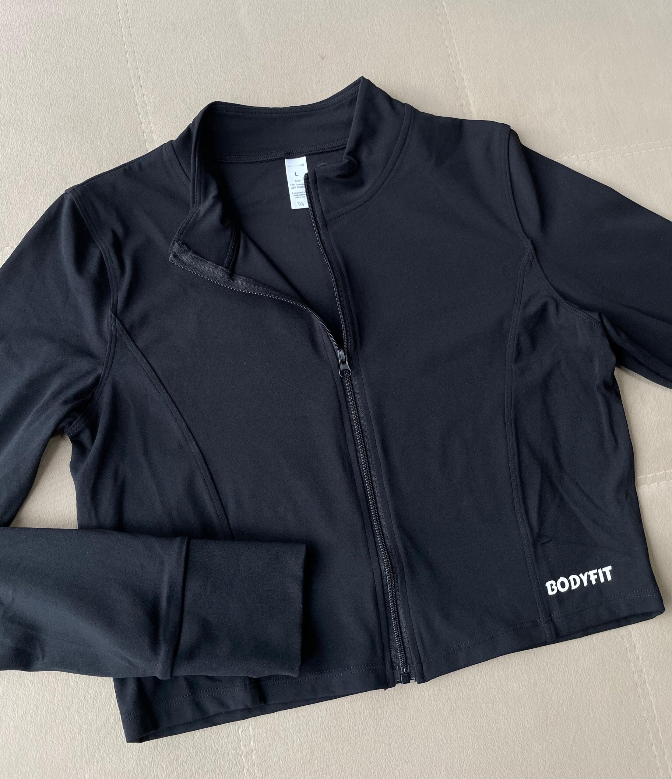 Esta campera en color negro es el básico imprescindible que eleva cualquier look. Ideal para el gym, running o un outfit urbano que no pase desapercibido.