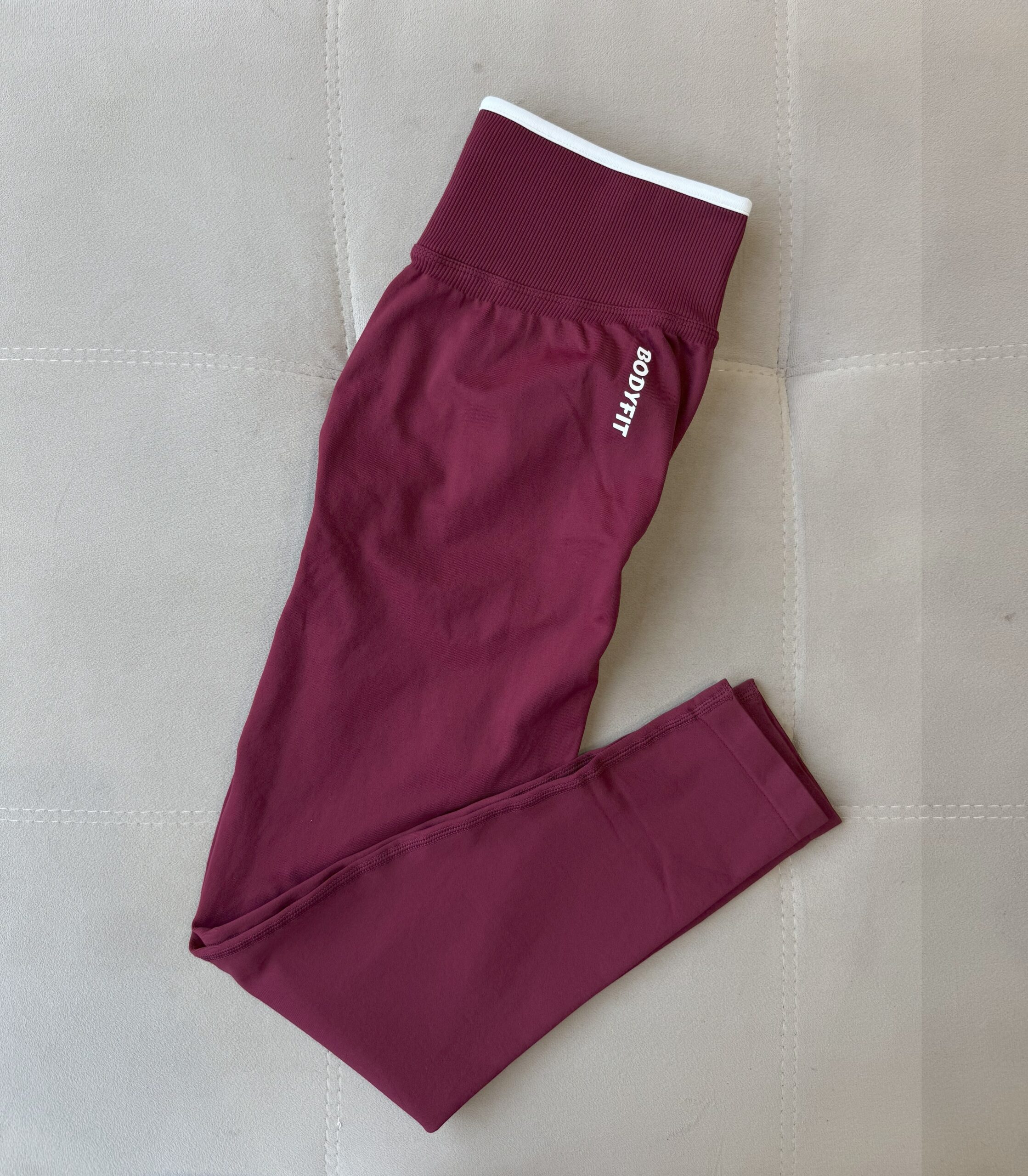 El detalle bicolor en bordó con bordes blancos en la cintura aporta un contraste moderno y sofisticado, estilizando la silueta y destacando la zona abdominal. La pretina ancha de compresión media asegura un ajuste perfecto y seguro, manteniendo la prenda en su lugar sin marcar.