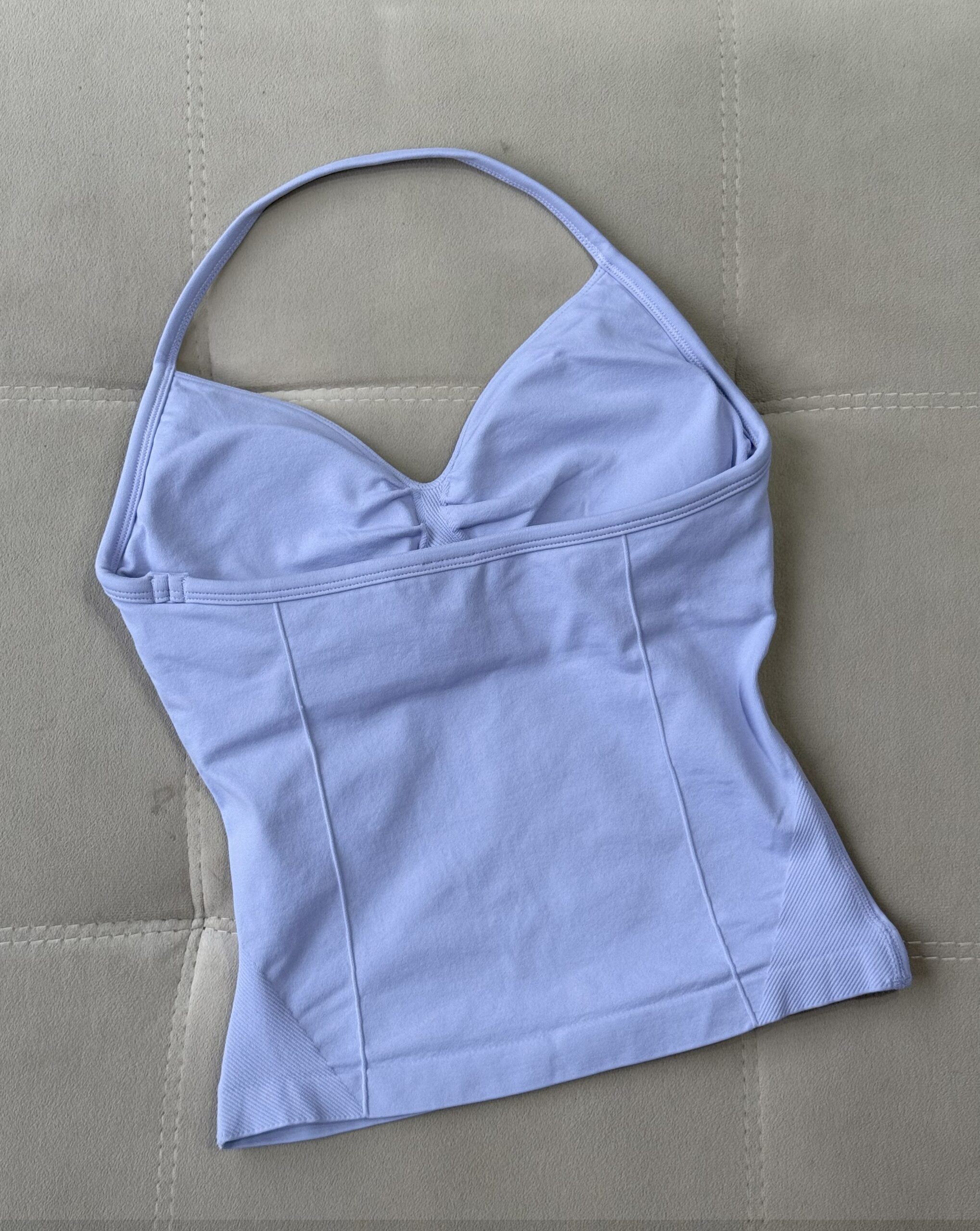 Diseñada para destacar, esta musculosa lavanda con bretel único al cuello libera completamente la espalda, logrando un look limpio, sensual y fresco, elevando lo deportivo a un nuevo nivel de sofisticación. Confeccionada 100% en textil Seamless, ofrece un calce entallado y sin costuras que moldea, define y se adapta al cuerpo como una segunda piel, sin marcar ni incomodar.